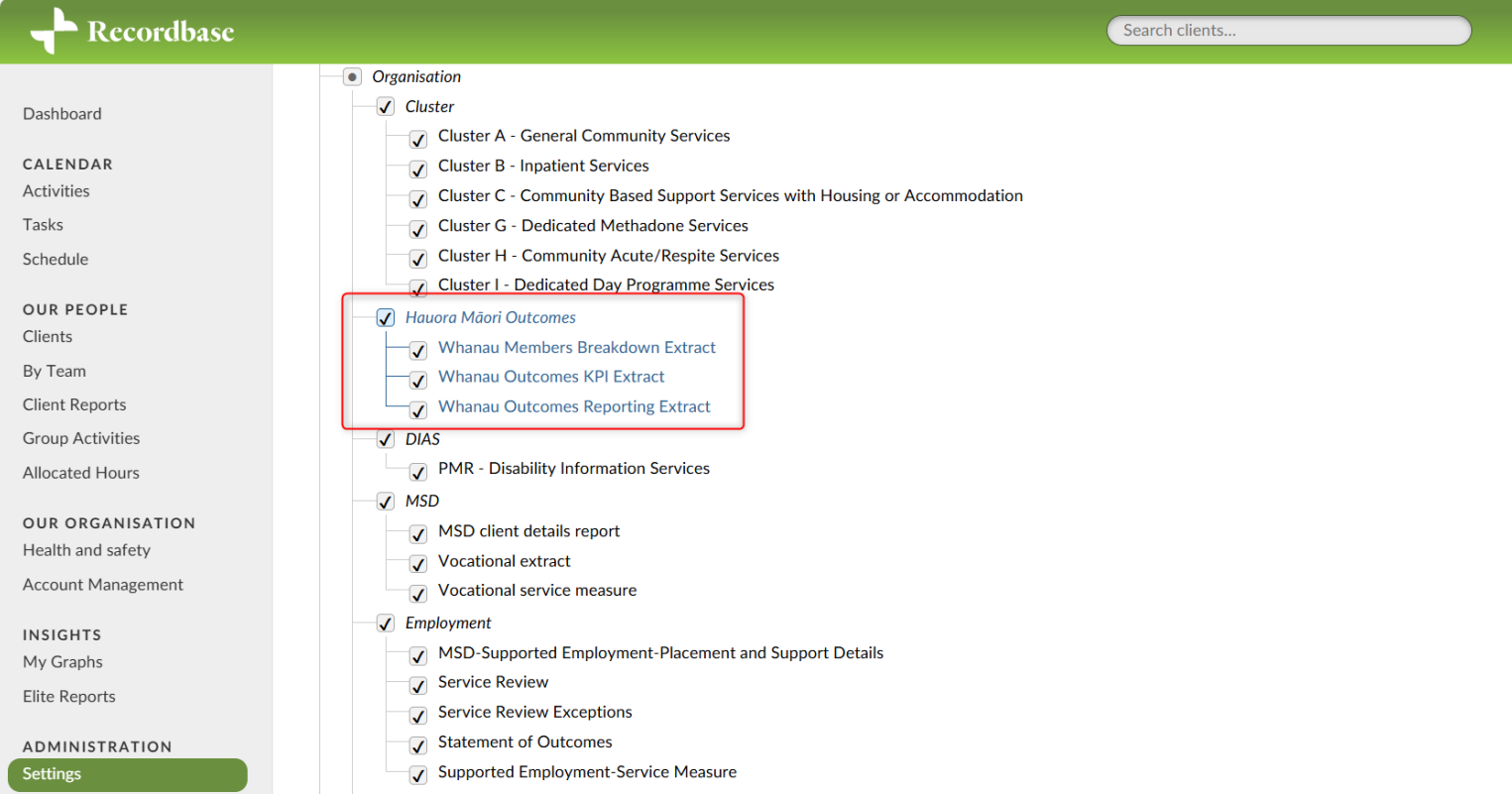 - The ‘Awhi Ora Extract’ has been added to support reporting to Synergia